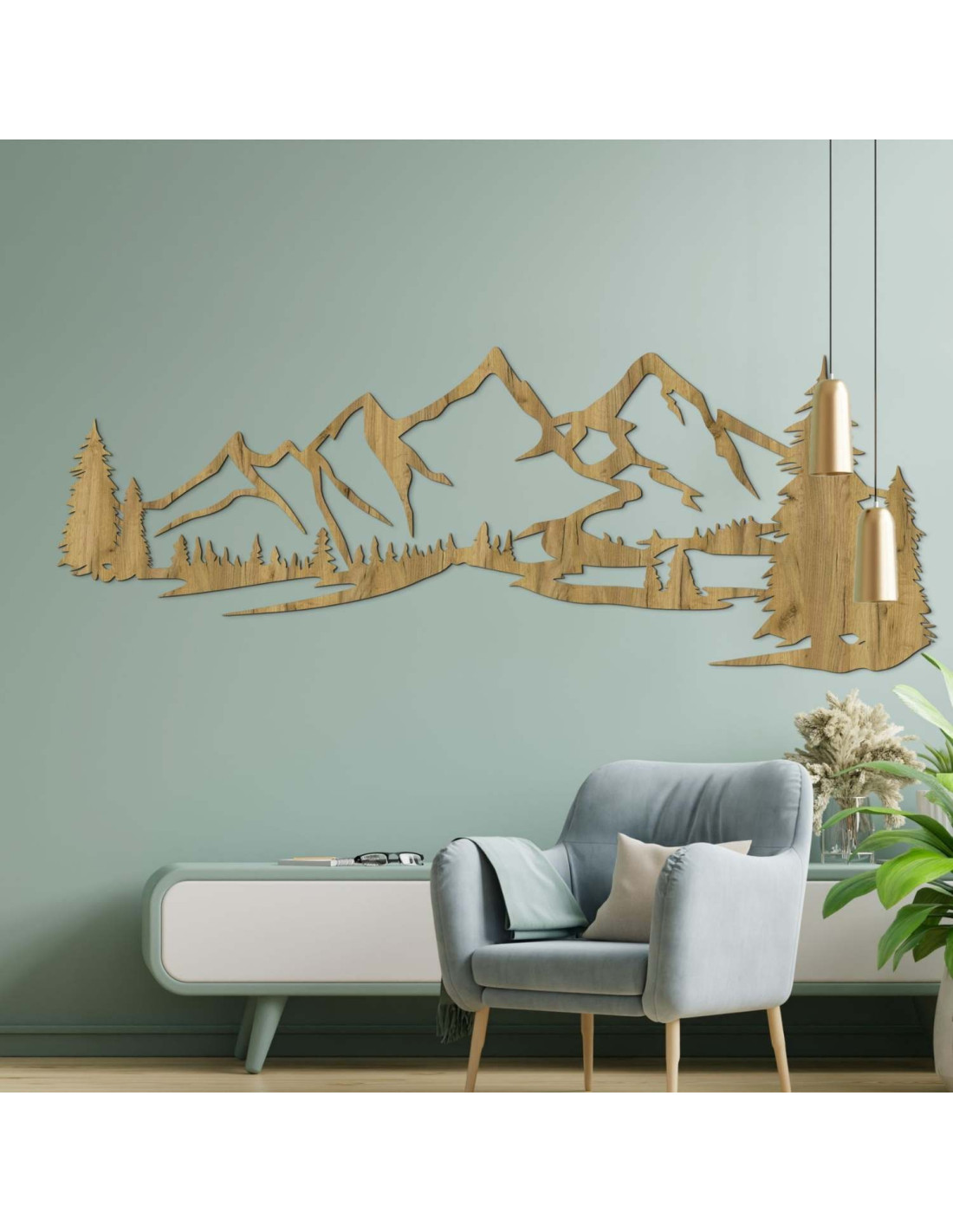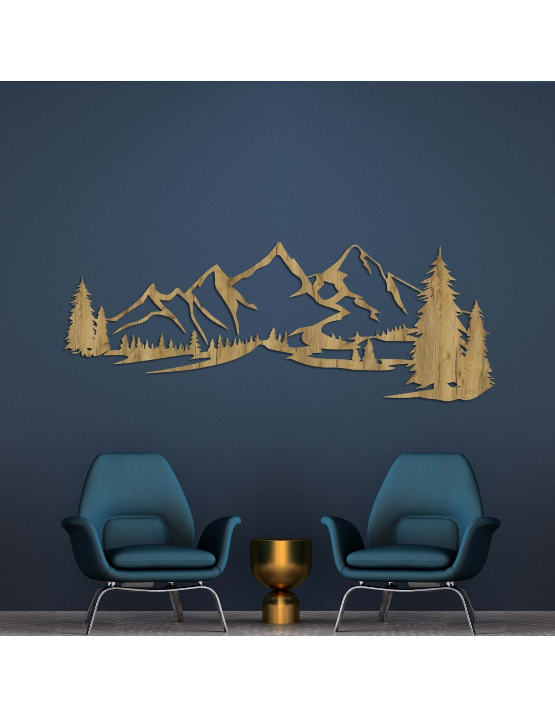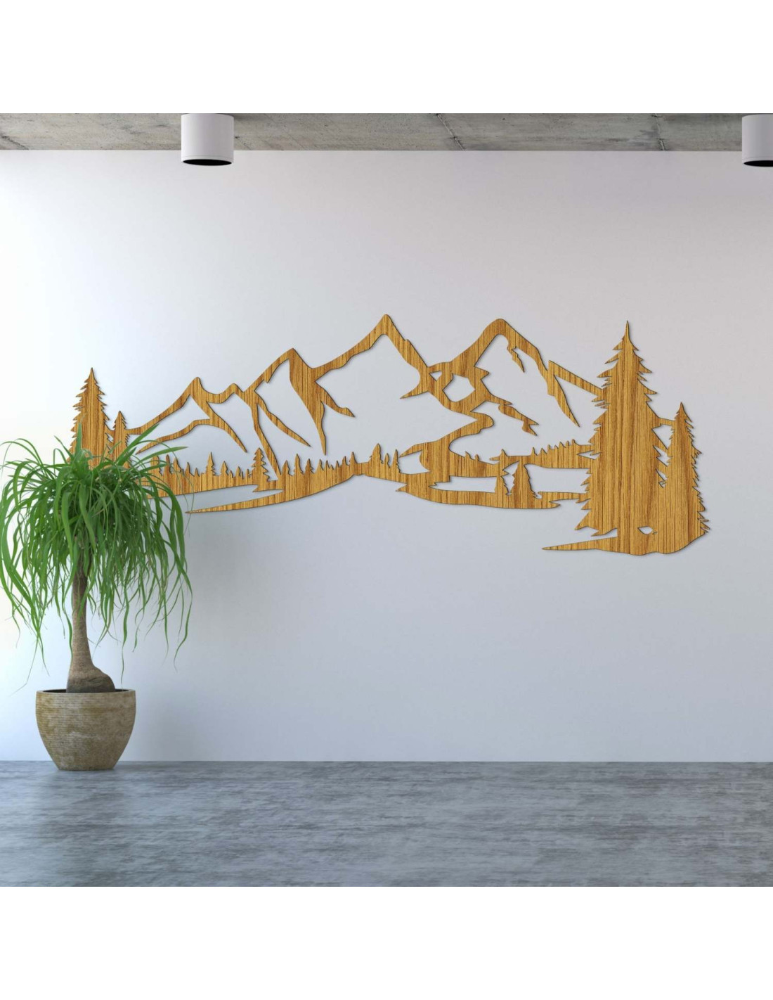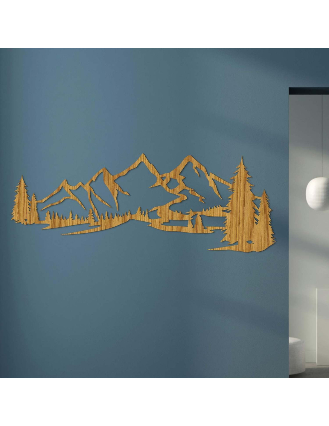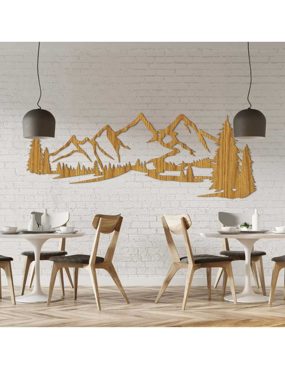 A hegy és erdő motívumú fa faldekoráció egy elegáns és modern elem, amely harmonikus természeti hangulatot kölcsönöz otthonának. A hegy és erdő motívumú fa falfestmény kiemeli bármelyik nappalit, és egyedi természeti jelleget kölcsönöz neki.