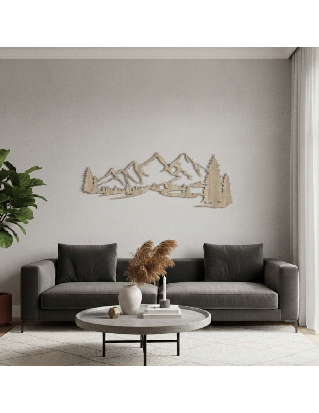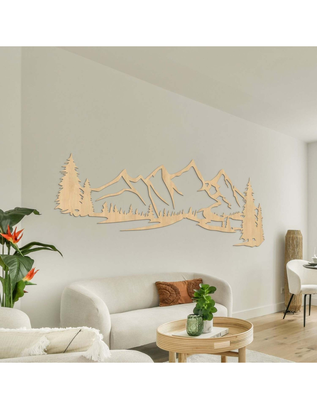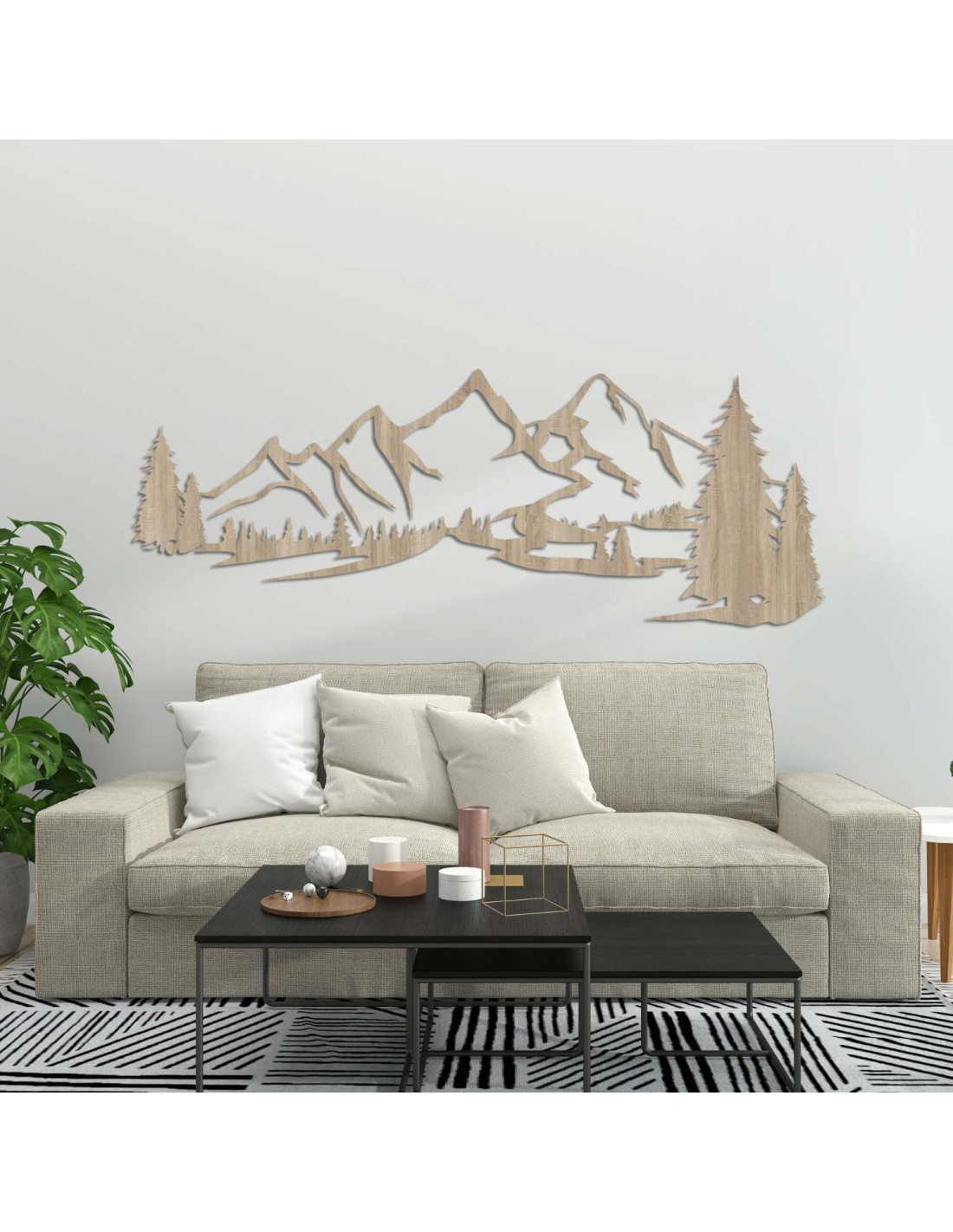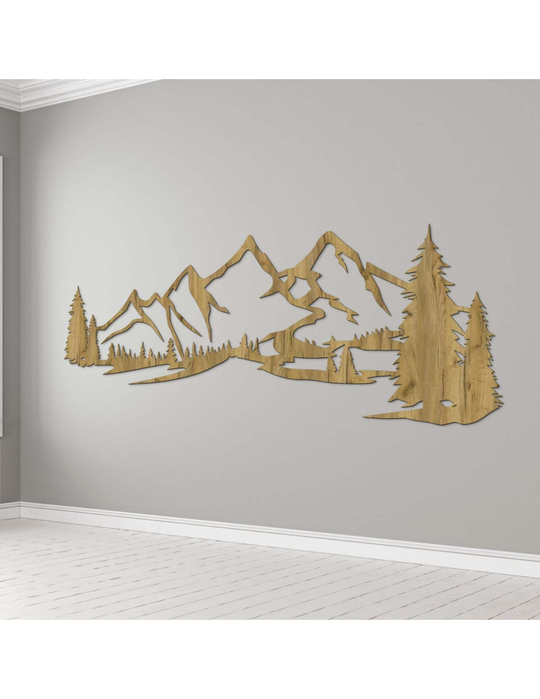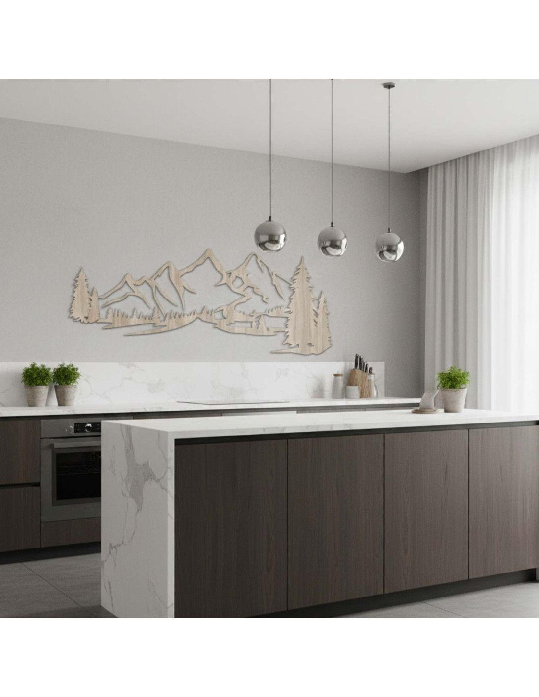 A hegy és erdő motívumú fa faldekoráció egy elegáns és modern elem, amely harmonikus természeti hangulatot kölcsönöz otthonának. A hegy és erdő motívumú fa falfestmény kiemeli bármelyik nappalit, és egyedi természeti jelleget kölcsönöz neki.