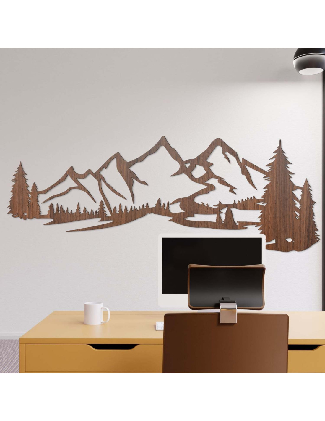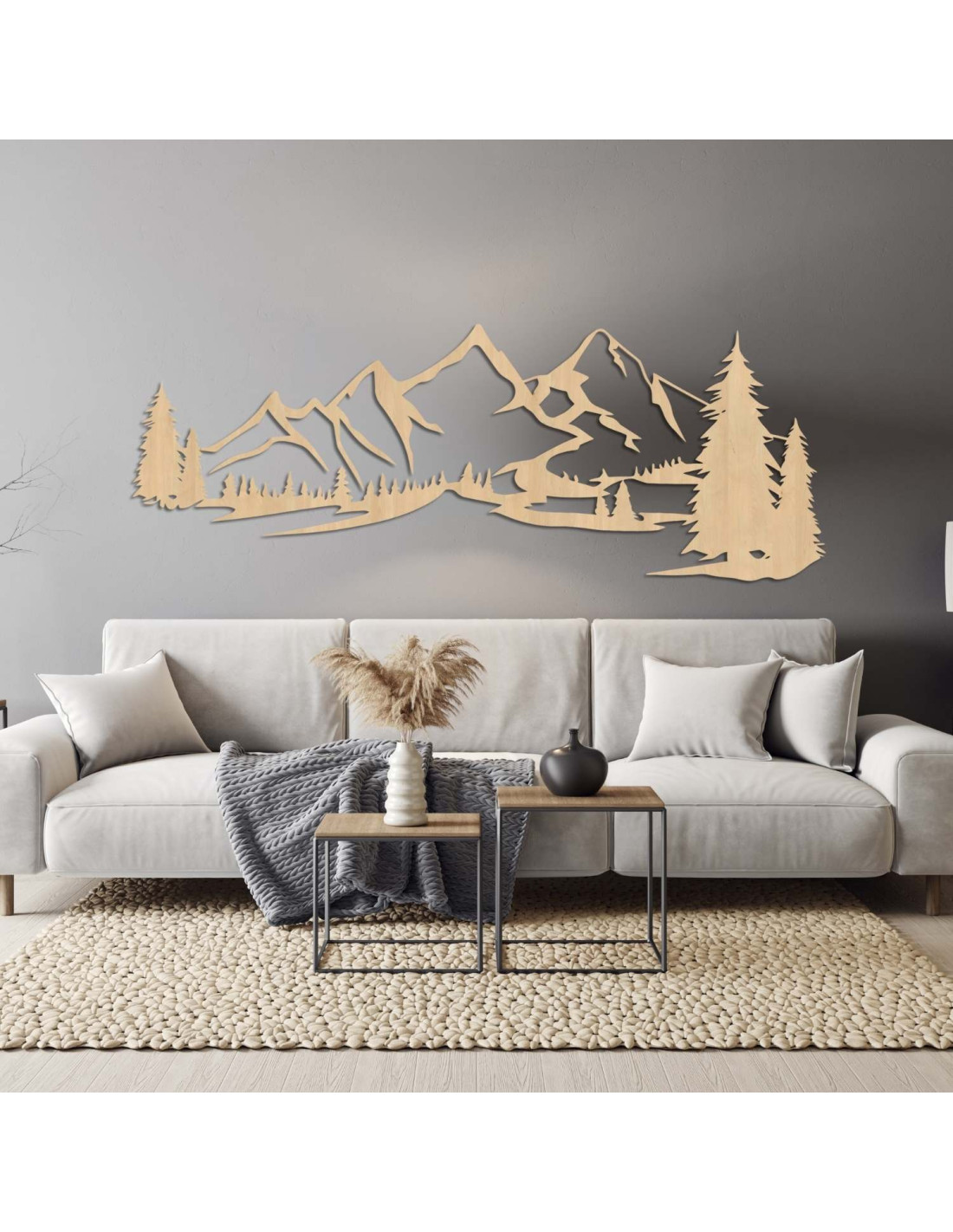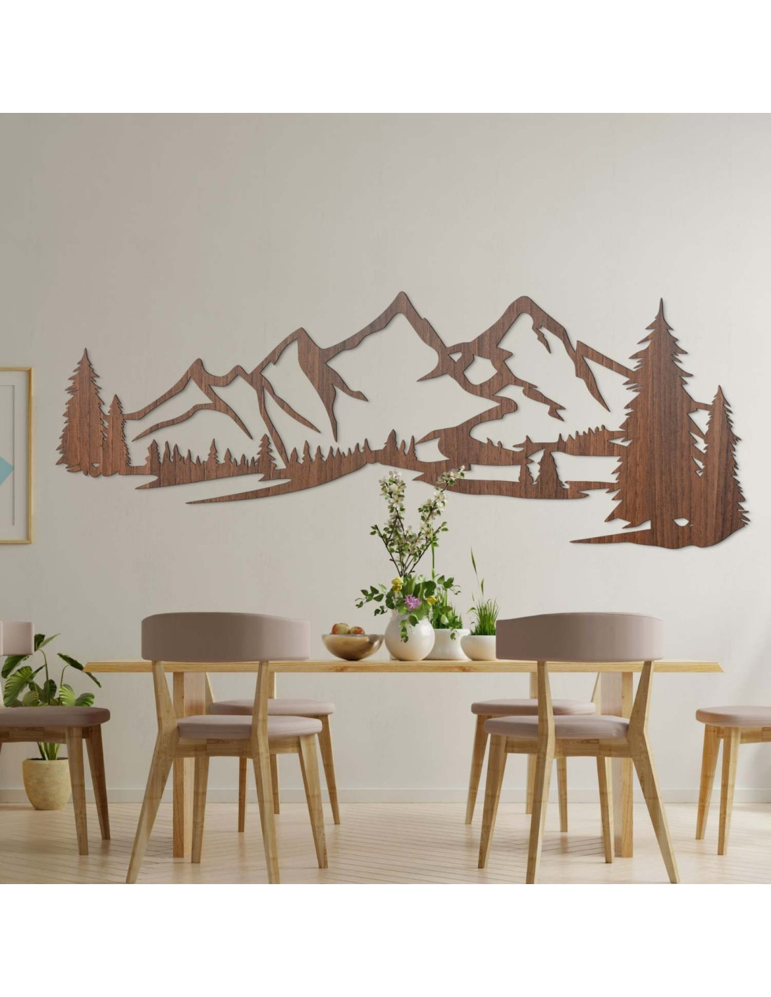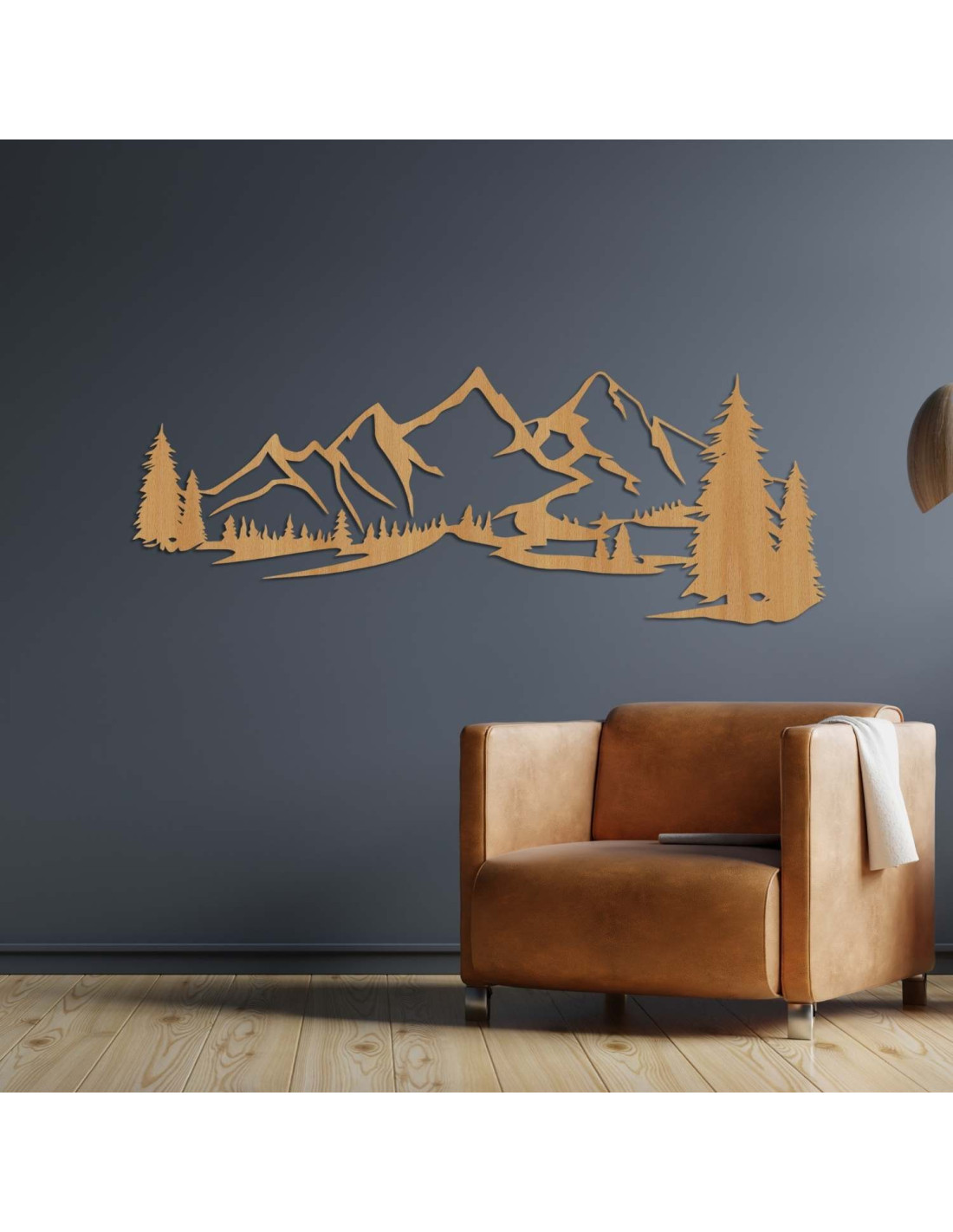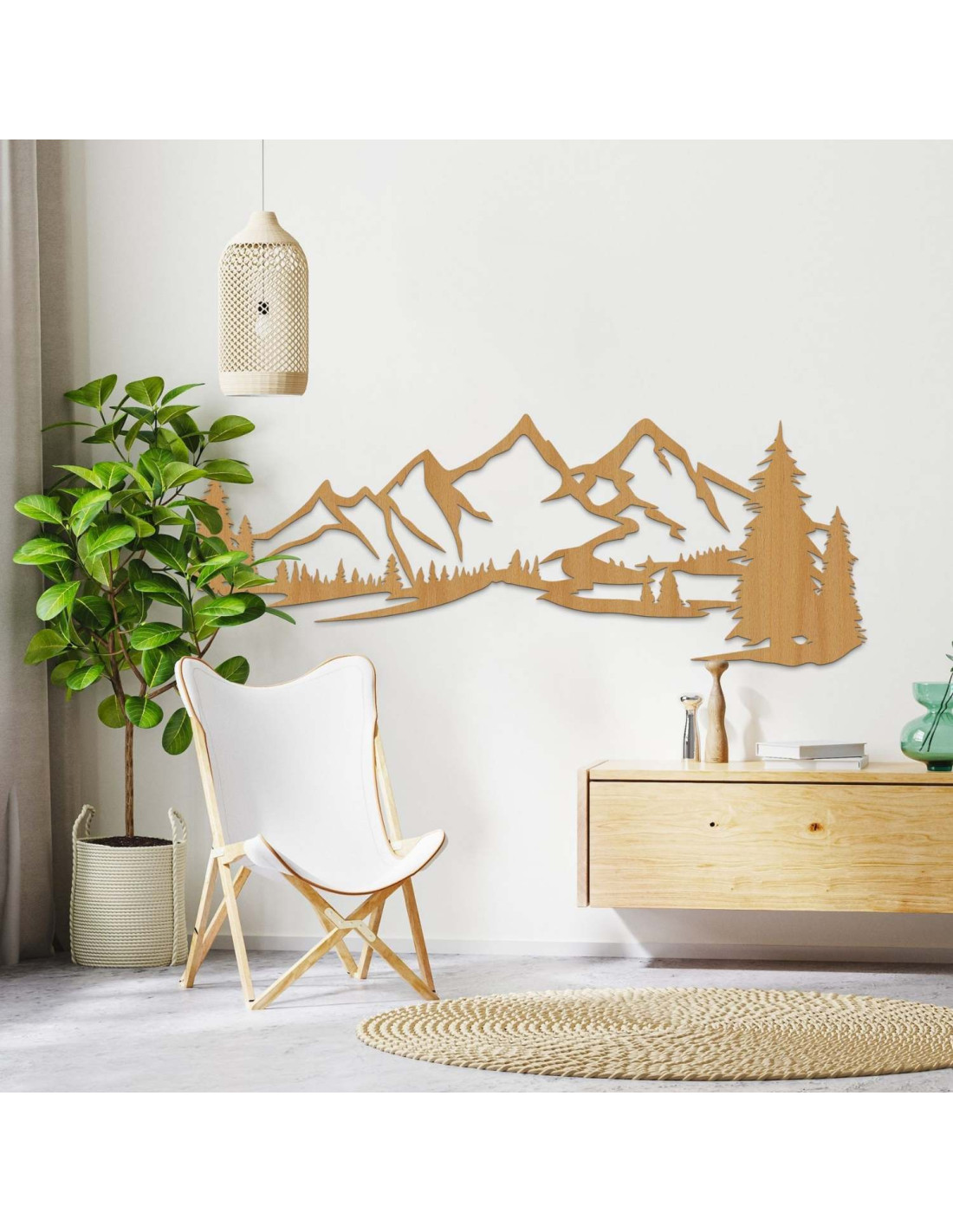 A hegy és erdő motívumú fa faldekoráció egy elegáns és modern elem, amely harmonikus természeti hangulatot kölcsönöz otthonának. A hegy és erdő motívumú fa falfestmény kiemeli bármelyik nappalit, és egyedi természeti jelleget kölcsönöz neki.