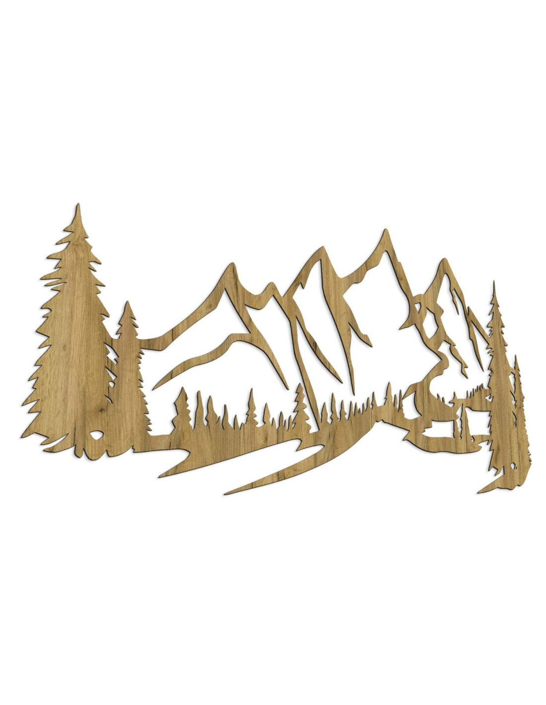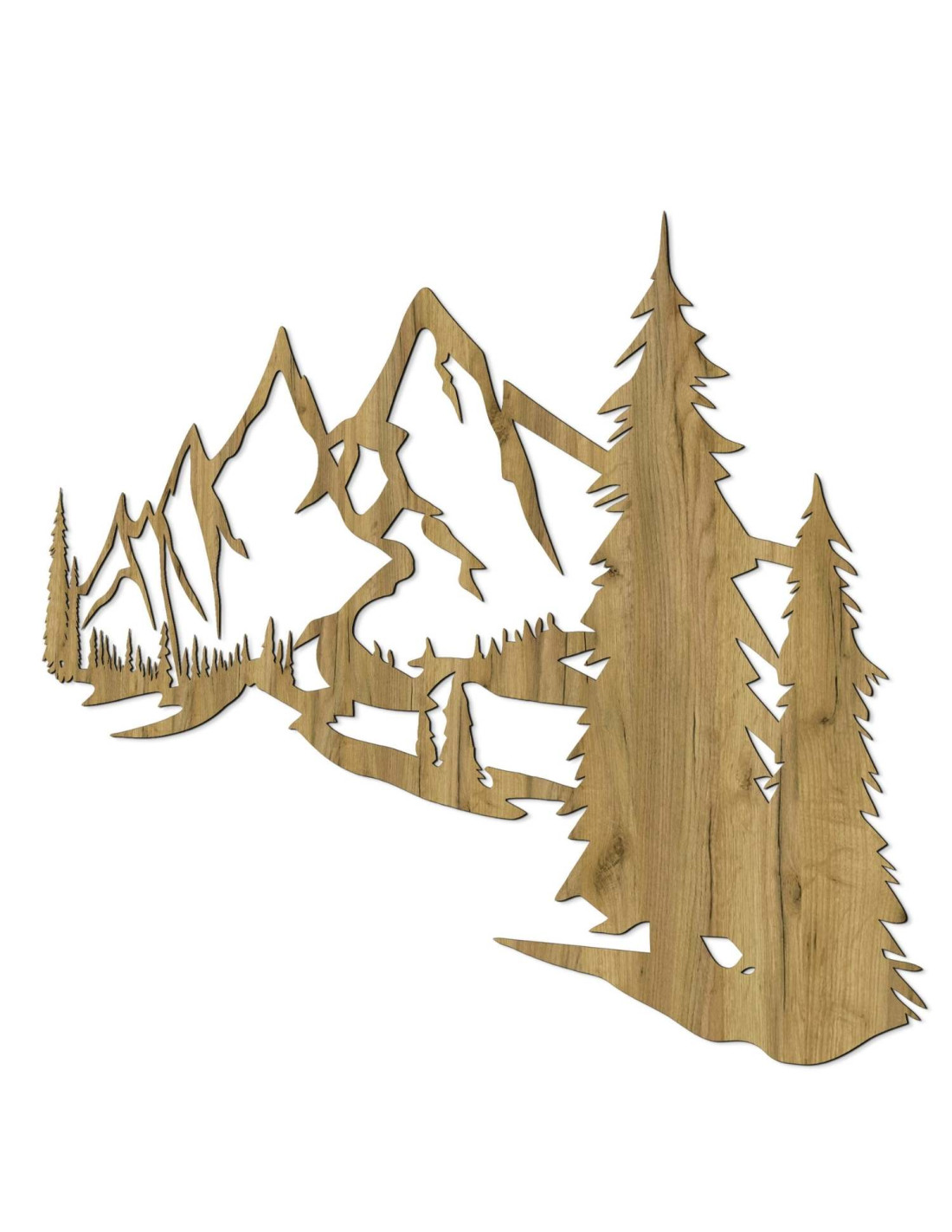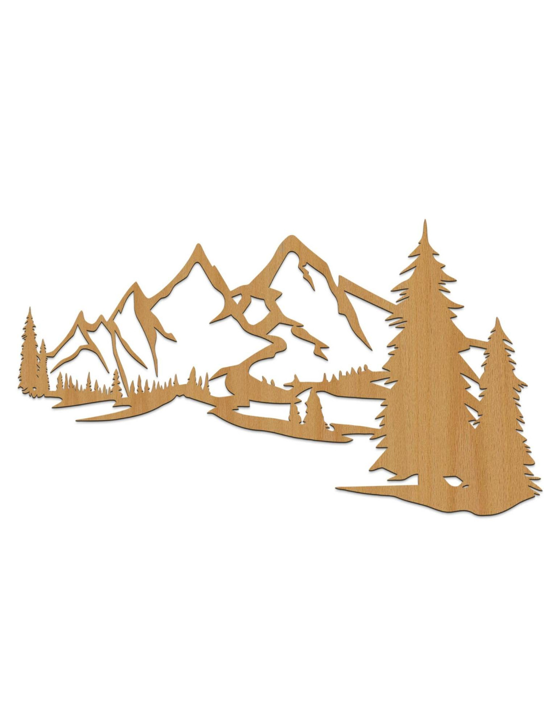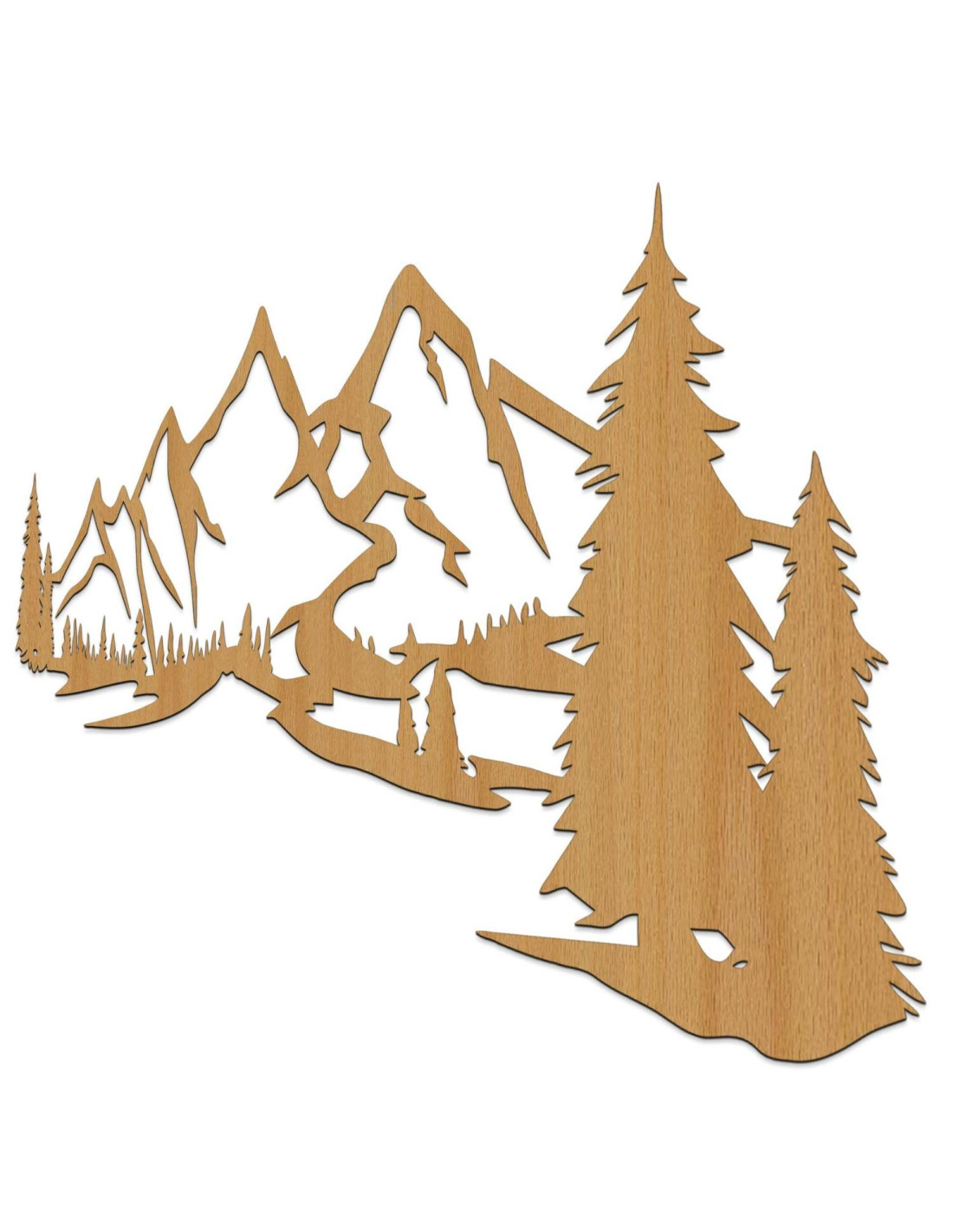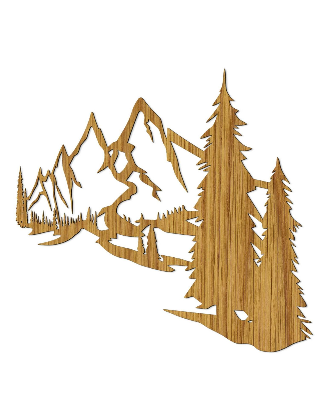 A fenséges hegyek és tűlevelű fák látványát precíz lézervágással faragták ki, biztosítva a finom részleteket, a tiszta vonalakat és a professzionális minőségű kidolgozást.