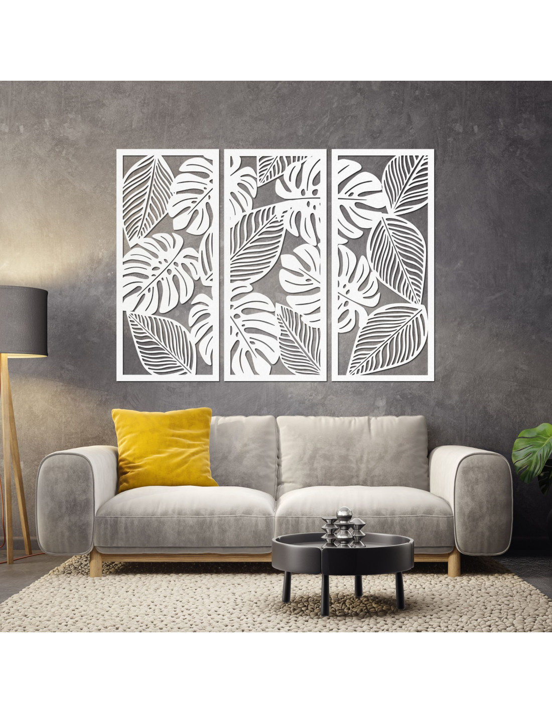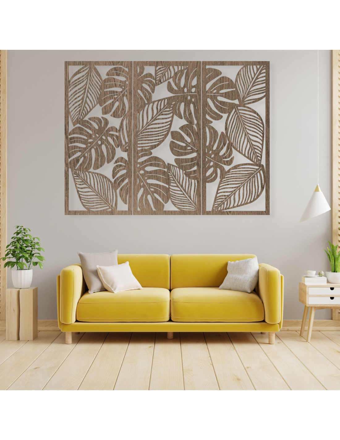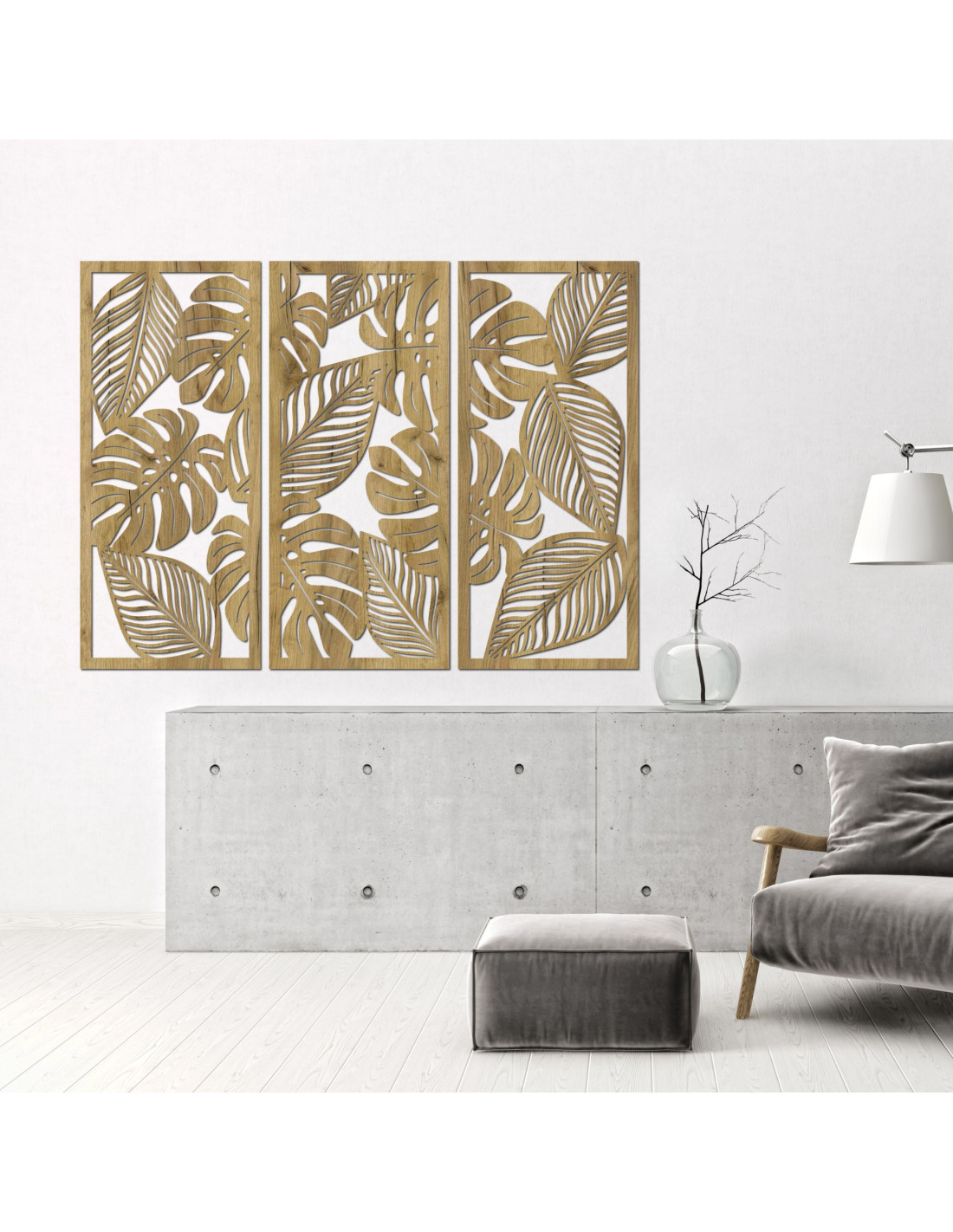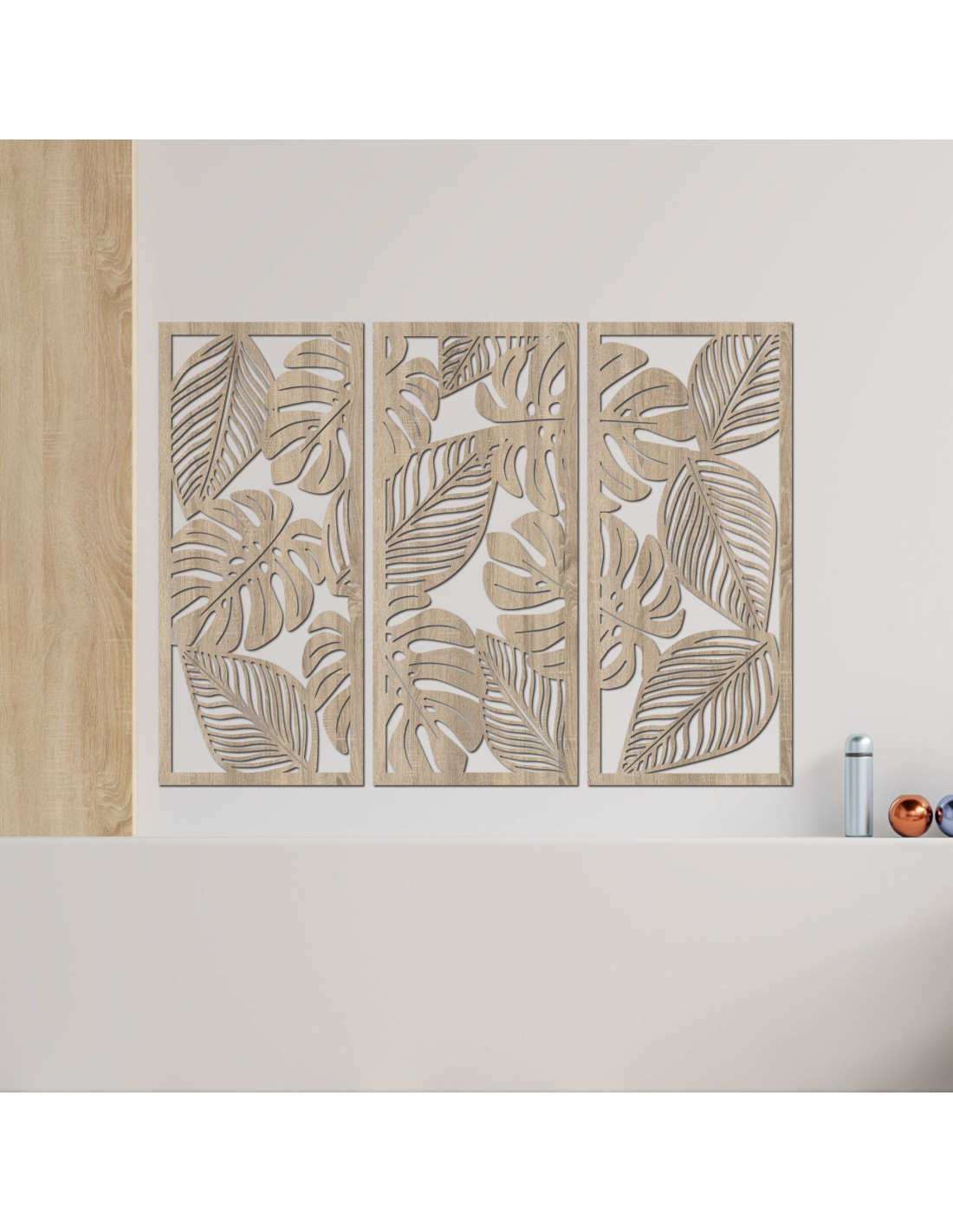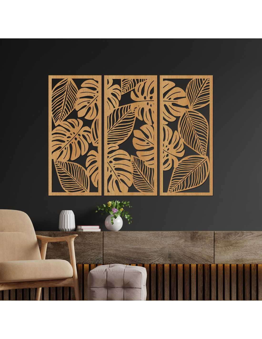 Tapasztalja meg a természetes harmóniát három darabos, fából készült Monstera faliképünkkel .