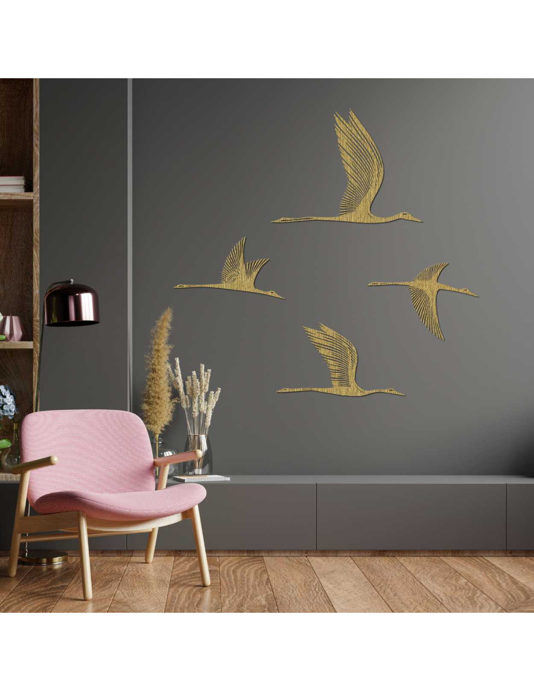 Egy elegáns , repülő madarak motívumával díszített fa dekoráció szabadságot és mozgást kölcsönöz a belső térnek.