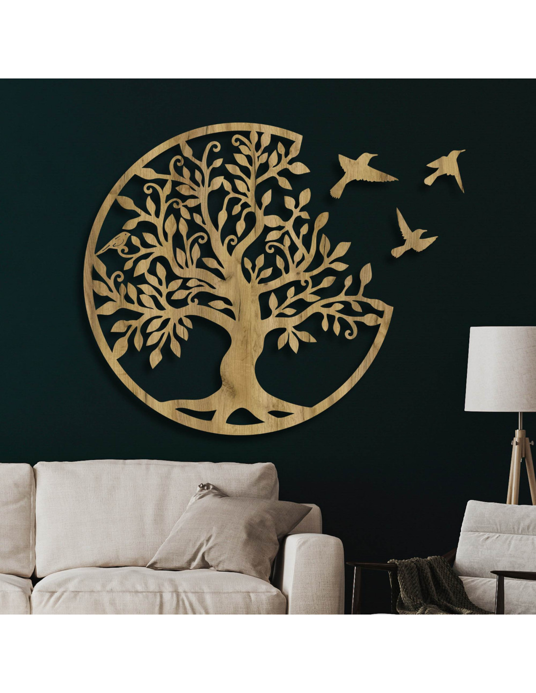 Az Életfa 3 repülő madárral egy elegáns falfestmény.