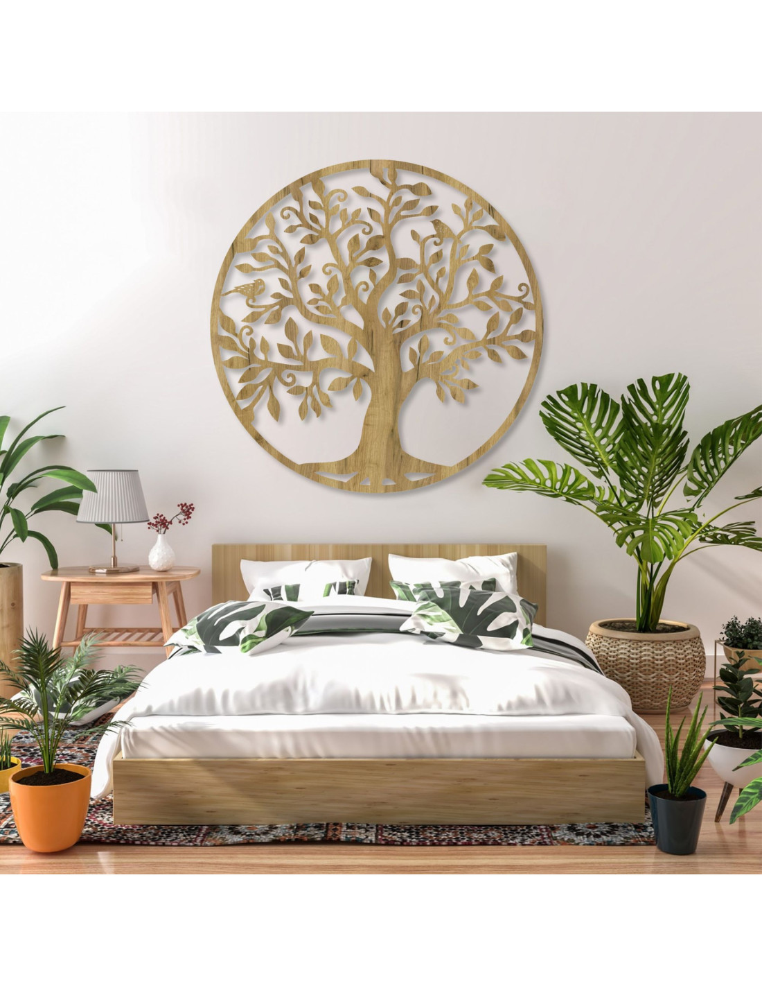 Ez az elegáns, életfa alakú faragott fakép békét, lelki egyensúlyt és esztétikai bájt hoz otthonába. A családot, a növekedést és az élet állandó körforgását szimbolizálja. A kiváló minőségű természetes anyagokból készült precíz kidolgozás egyedi fali dekorációvá teszi ezt a képet, amely bármilyen belső teret otthonossá tesz. Tökéletesen illik a nappaliba, a hálószobába vagy az irodába, és eredeti dizájnja első látásra magára vonzza a figyelmet. Ajándéknak is ideális a természet és a harmónia szerelmeseinek .