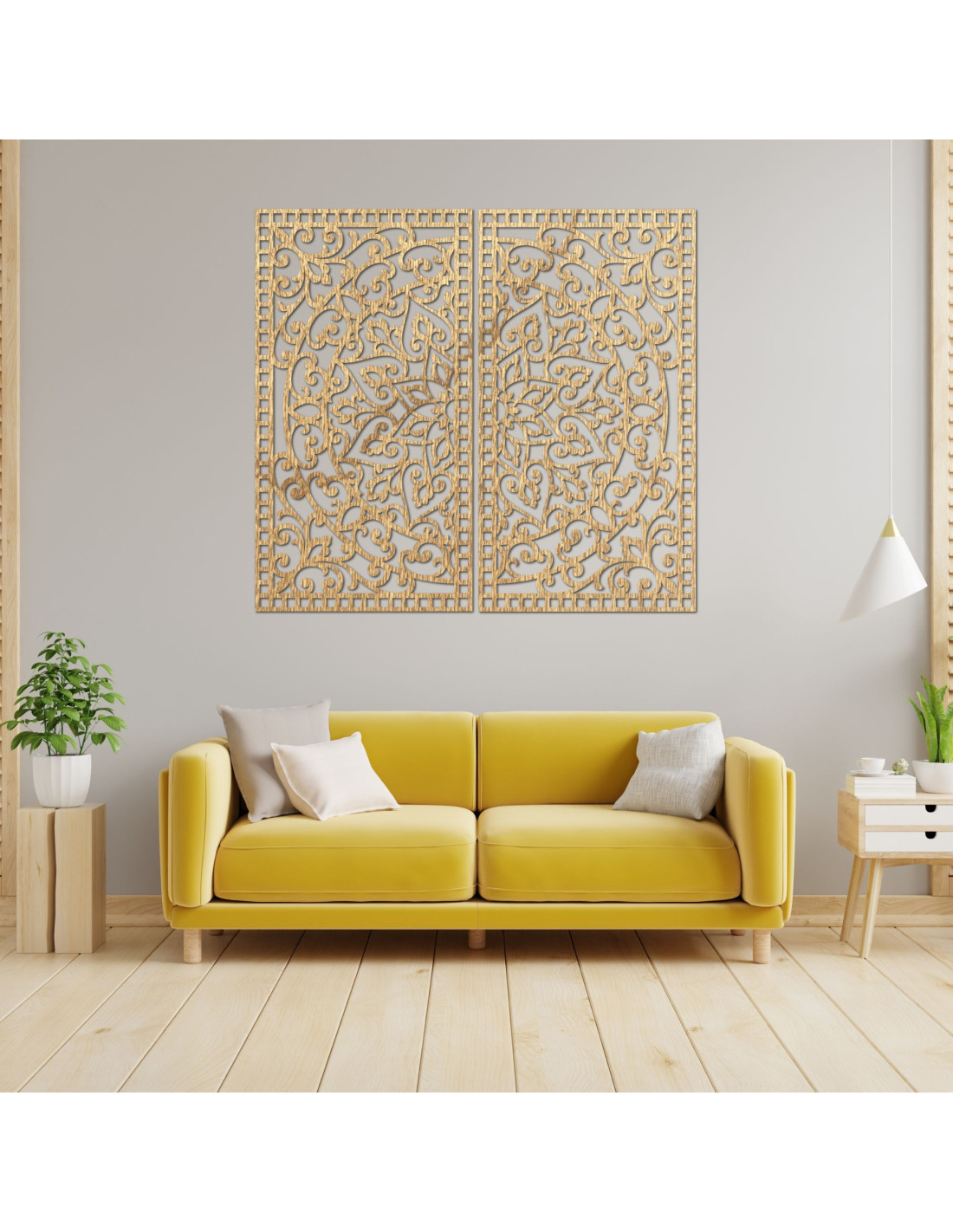 Fából készült kétrészes mandala festmény – Faragott faldekoráció - FLOUFER