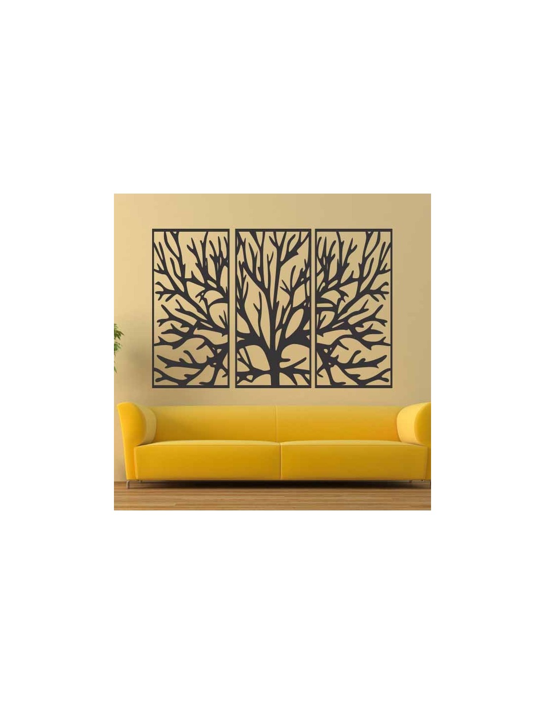 A festmény három, absztrakt famintázatú panelt tartalmaz, amelyek ágakat vagy faágakat ábrázolnak.
