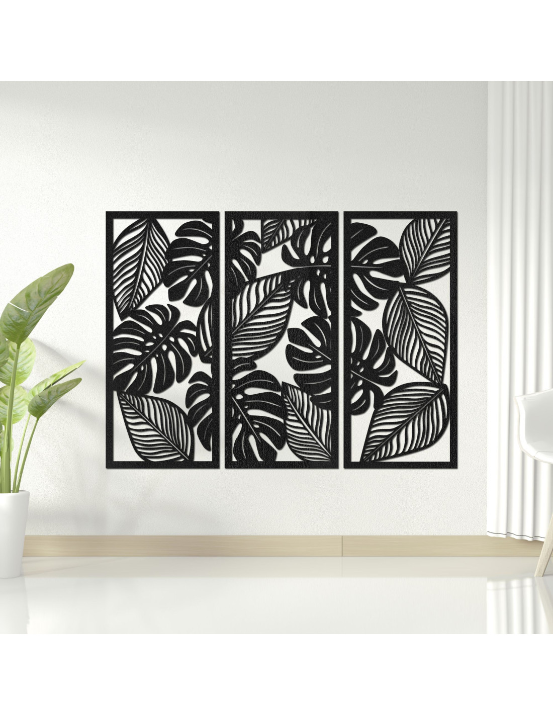 Tapasztalja meg a természetes harmóniát három darabos, fából készült Monstera faliképünkkel .